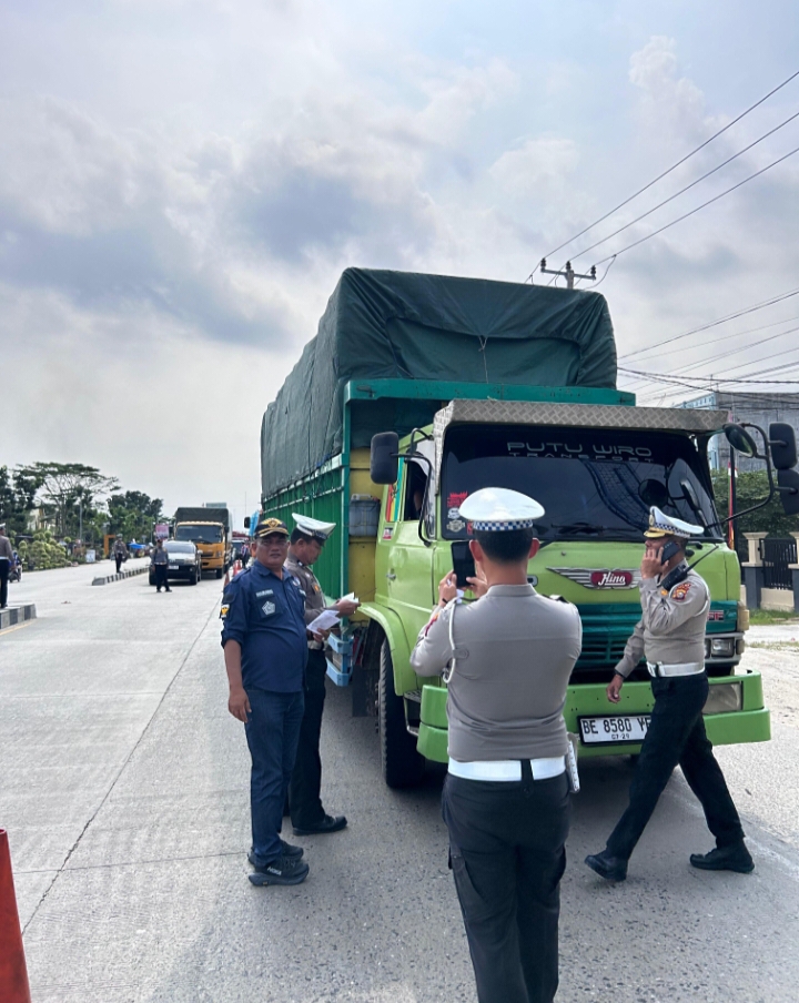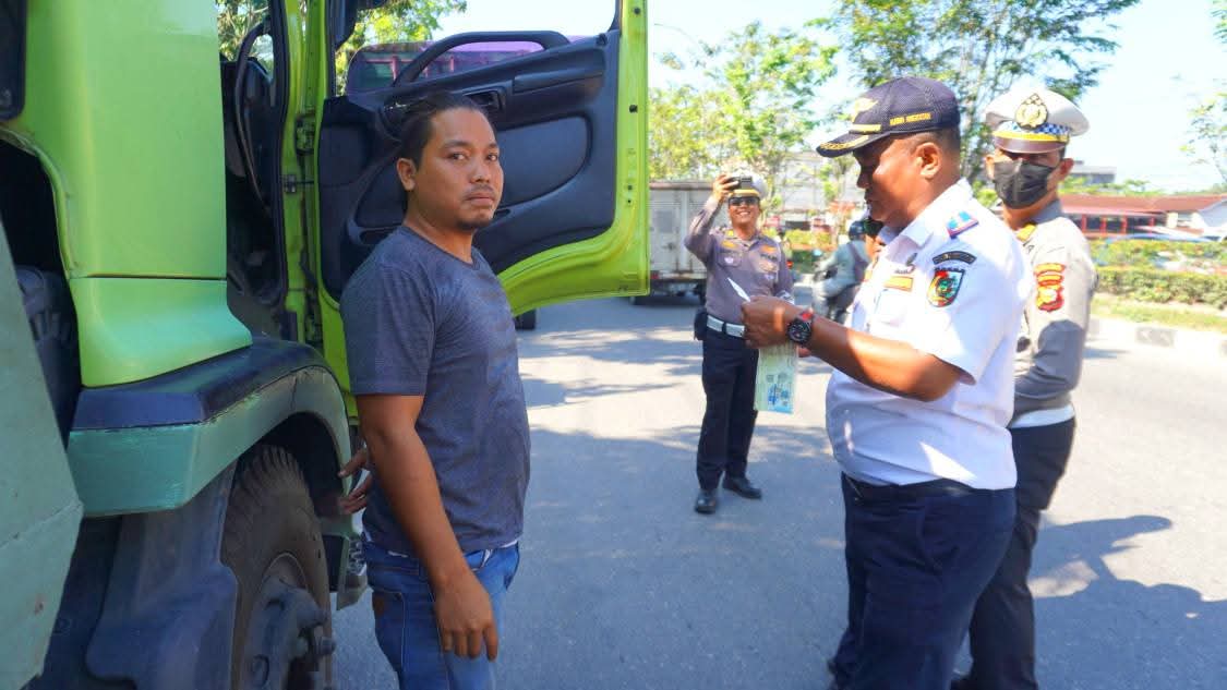 Pantauan Wartawan, ada puluhan kendaraan yang dihentikan oleh petugas gabungan. Pengemudi diminta untuk menunjukkan SIM, STNK, KIR, serta KP.