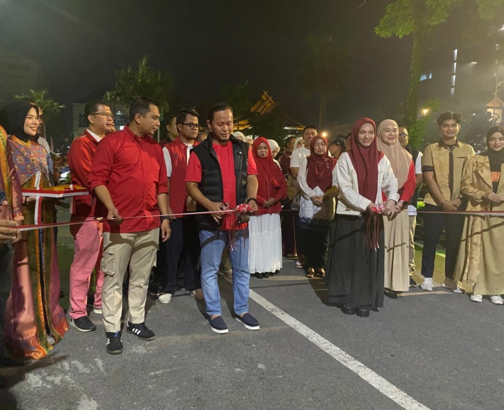 Pekanbaru - Wali Kota Pekanbaru H Agung Nugroho SE MM secara resmi membuka Soft Launching Taman Labuai City Walk di kawasan Purna MTQ Jalan Sudirman, pada Sabtu (16/8/2025) malam.