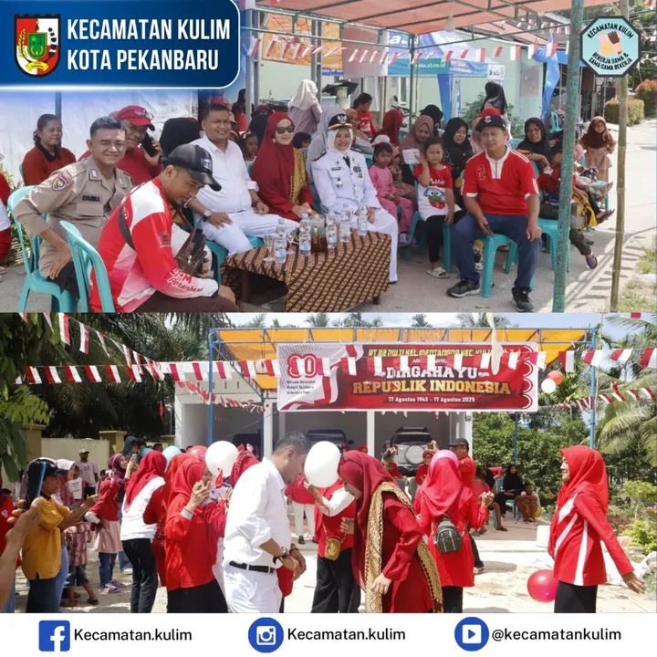 Sebagai bentuk suka cita dan rasa syukur menyambut HUT ke-80 Kemerdekaan RI, usai menghadiri berlangsungnya Upacara Detik-Detik Proklamasi Kemerdekaan Republik Indonesia. Camat Kulim Fajri Adha didampingi Ketua TP PKK Kecamatan Elvira Dian Putri langsung menuju kelurahan mentangor untuk menikmati suasana pesta rakyat yang digelar di lingkungan RT RW di