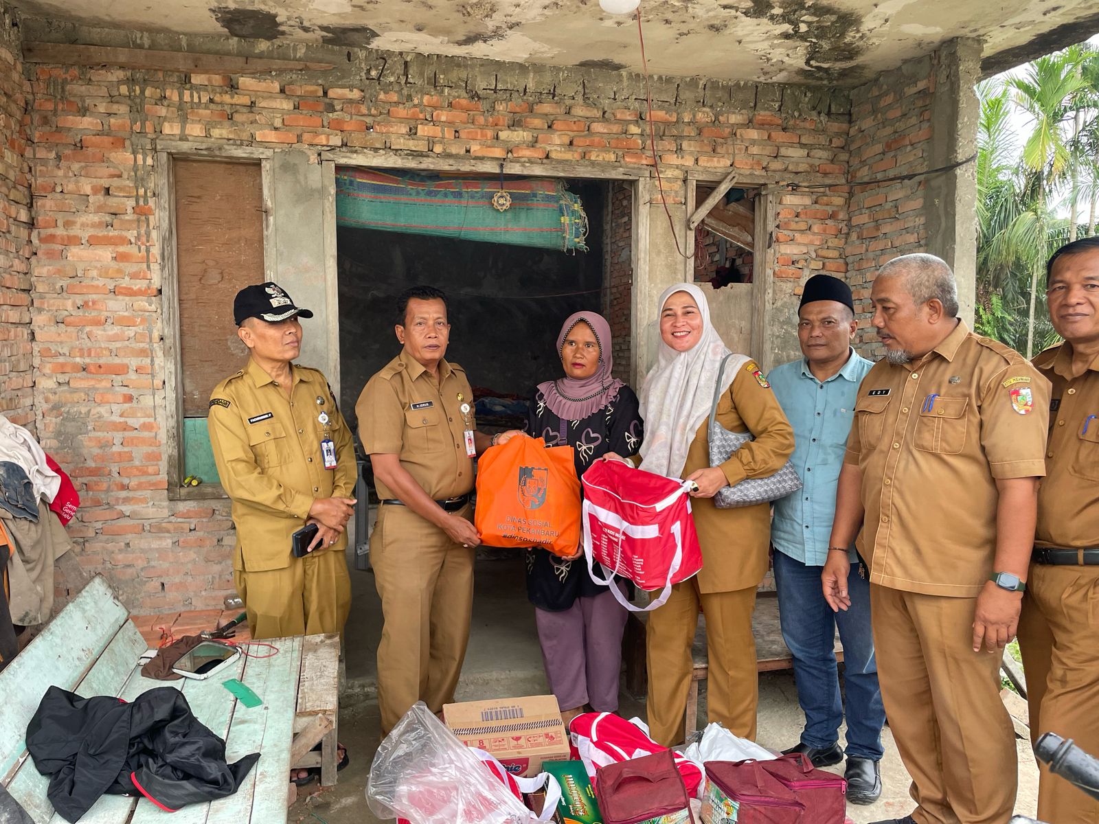 Bantuan diserahkan langsung Kepala Dinsos Pekanbaru Dr. Idrus, M.Ag didampingi Kepala Bidang Perlindungan dan Jaminan Sosial H Bukhoiro Penyaluran dipusatkan di rumah warga korban bencana di RT.01 RW.01 Kelurahan Rumbai Bukit Kecamatan Rumbai Barat.