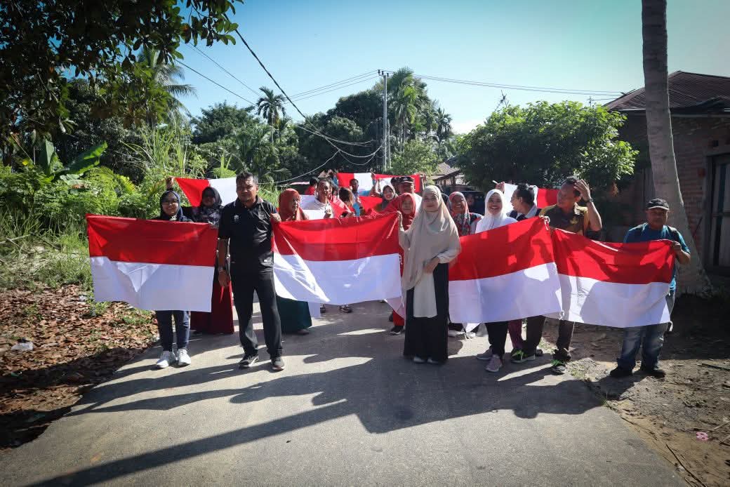 Meriahkan HUT ke-80 RI, Camat Kulim Goro Merah Putih di Kelurahan Mentangor